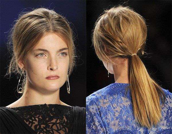 Соберите волосы в хвост у основания шеи, скрутите в пучок, оставив несколько локонов. Протяните пряди через «дырку» для объема. Добавьте атласную ленту или заколку с жемчугом. Чтобы прическа продержалась подольше, сбрызните лаком средней фиксации. Идеально под пальто с меховым воротником.