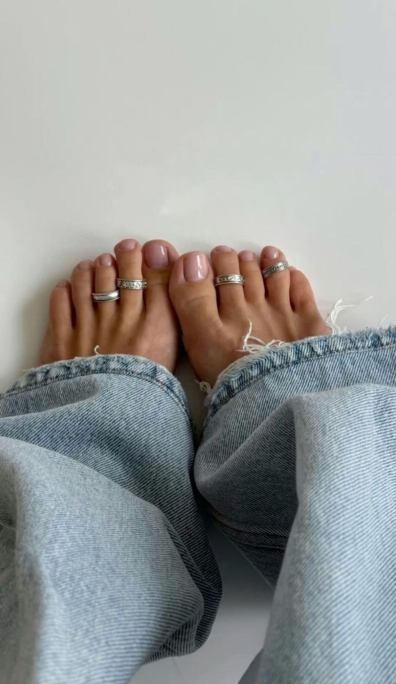 Нюдовый педикюр универсален, актуален всегда и в любой сезон. Весной 2026, не исключение. Кремовый, молочный, кофейный, бледно-розовый, мягкий беж — цвета выглядят особенно выразительно на фоне загара, но остаются уместными и на светлой коже. Главное правило — правильный подтон. Теплые нюды подчеркивают золотистый оттенок кожи, холодные — делают образ более графичным. В моде не только классический глянец, но и матовый финиш, деликатный шиммер, втирка с мягким свечением. Допустим аккуратный омбре-эффект. Нюдовые педикюр подходит для любой формы ногтей — от коротких аккуратных до более вытянутых.