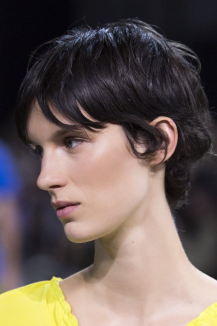 Akris Короткая стрижка, открывающая лобТакая стрижка идет девушкам с изящной шеей и правильными чертами лица. Проще всего укладывать ее обладательницам вьющихся волос. Достаточно немного текстурирующего спрея, чтобы создать модную прическу. Примеры для подражания можно было увидеть на показах Dior, Givenchy и Balmain.