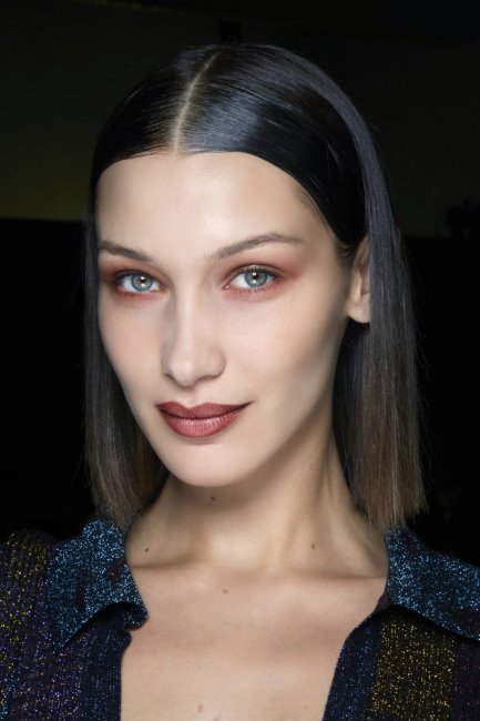 PradaВспышка на солнцеВ качестве яркого акцента в макияже можно выбрать яркие тени (самые яркие, которые есть в косметичке). А усилить торжественность момента можно с помощью глиттера в тон, как на показе Gabriela Hearst.