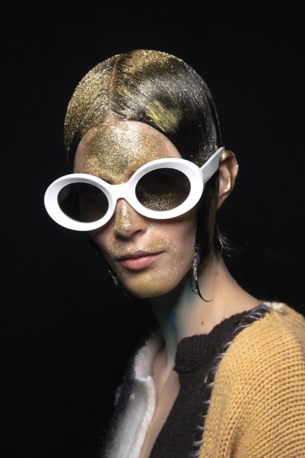 Missoni ГлиттерТем, кому кажется, что глиттер – это too much, стоит пересмотреть свое отношение к данному виду макияжа. Это сделать очень легко, вдохновившись образами с показа Marni: глиттер там использован иронично и смело. Ну и совершенно ясно: такой макияж не оставляет сомнений в своей праздничности.