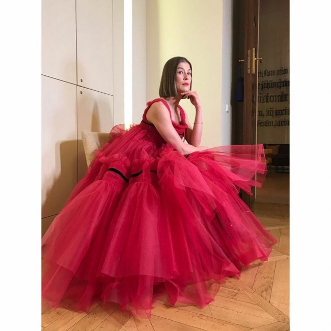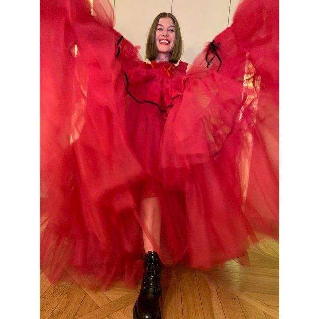 Фото: Gareth Gatrell, Vogue.comРозамунда ПайкРозамунда ПайкПублика единодушно считала алюзию на образ главной кинозлодейки Вилланель: алое платье Molly Goddard и грубые ботинки Alexander McQueen в сочетании с красной помадой создавали эффектное комбо.