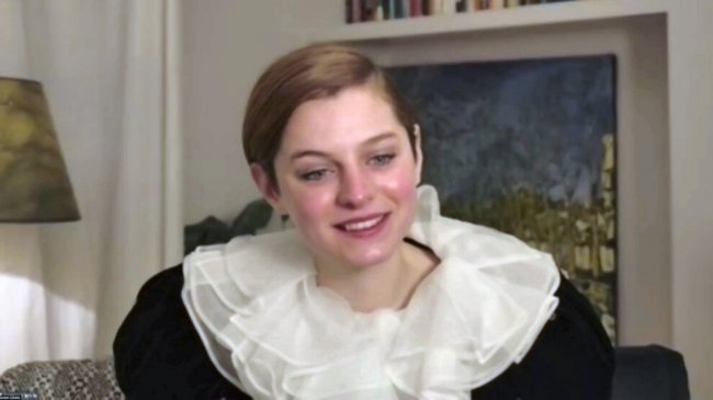 Кэри МаллиганЗа образ актрисы отвечали стилист по прическам Dayaruci и визажист Эмма Уайт Тартл, которые использовала бьюти-средства Sisley. К "выходу" Кэри готовили в Лондоне, а в эфир она выходила из пустой гостиницы.
