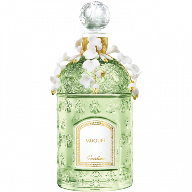 Каждый год 1 мая у Guerlain выходит Muguet, аромат ландыша в эксклюзивном флаконе. В 2021 году, посвященный ландышам, в лимитированном флаконе. В этом году его оформляет молодая парижская дизайнер изделий из текстиля и бумаги Люси Туре