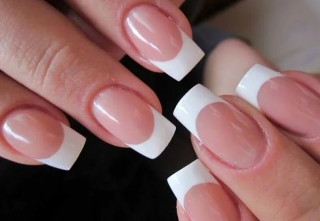 В классическом варианте свободный край ногтя оформляется белым цветом. Френч может быть выполнен как на натуральных, так и на искусственных ногтях.