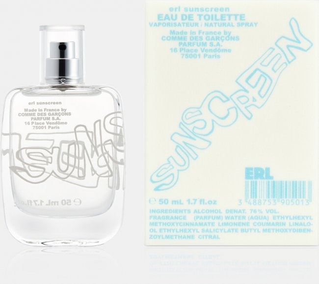 Sunscreen, Comme des GarçonsЕсли кто мечтал упаковать во флакон лето со всеми его запахами – моря, соленой кожи, солнцезащитного средства, хлорки в бассейне, – то ему будет приятно узнать, что эту мечту реализовали в Comme des Garçons в коллаборации с дизайнером ERL Эли Расселлом Линнетцем. Новый внегендерный аромат Sunscreen Comme des Garçons, работа над которым длилась два года, навеян знаменитым калифорнийским пляжем Венис-Бич и напоминает запах, когда вы только что вышли из воды и нанесли санскрин. В композиции – ноты бергамота, персика, гелиотропа, мускуса, кокосовый аккорд и кедровое масло.