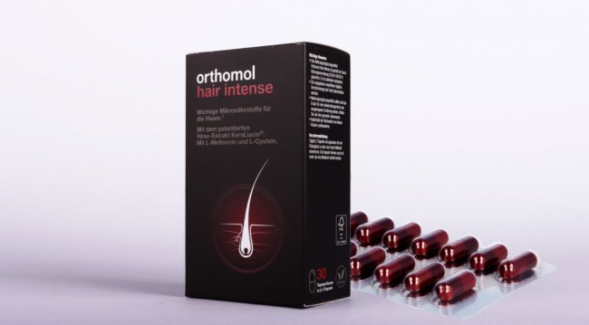Ухаживать за волосами – значит, не только регулярно очищать их с помощью качественной косметики. Правильный уход подразумевает и поступление важных нутриентов, отвечающих за густоту и здоровье. Прием Orthomol Hair Intense показан всем, кто недоволен состоянием своей прически: при медленном и недостаточно интенсивном росте; при чрезмерном выпадении; при первых признаках облысения; при недостаточно сбалансированном питании и нехватке полезных нутриентов; при частых стрессах; при интенсивном и длительном воздействии неблагоприятных факторов и так далее. Orthomol Hair Intense – витаминный комплекс, содержащий необходимые микро- и макроэлементы для укрепления корней волос и их активного роста. В составе комплекса – витамин А, который укрепляет корни волос, восстанавливает поврежденную структуру, возвращает блеск и эластичность; витамины B1, B6, B12, которые участвуют в метаболизме, обеспечивают правильный синтез белков, жиров и углеводов, обеспечивают густоту и блеск волос, стимулируют их рост, препятствуют ломкости; KeraLiacin (запатентованный экстракт проса), который участвует в укреплении и восстановлении структуры волос; аминокислоты L-цистеин и L-метионин, которые участвуют в образовании кератина, строительного материала для волос; а также пантотеновая кислота, минералы и микроэлементы, медь, селен, цинк.