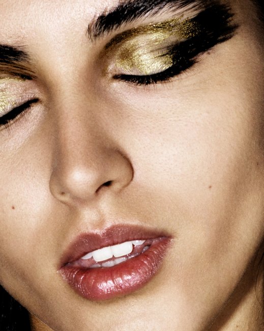 Солнцезащитные очки, VersaceКто сказал, что золотые металлические акценты в макияже – только для новогодних праздников? Золотой на веках, на ресницах или на губах – всегда хорошая идея. Плотность покрытия можно регулировать.