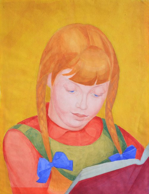 Автор: Богомазов Олександр Костянтинович Назва: Портрет дівчинки, яка читає книжку (Дочка художника). 1923. Акварель, папір