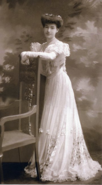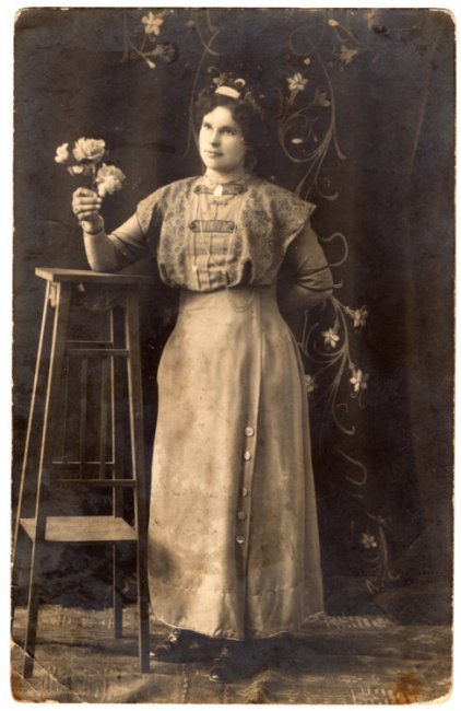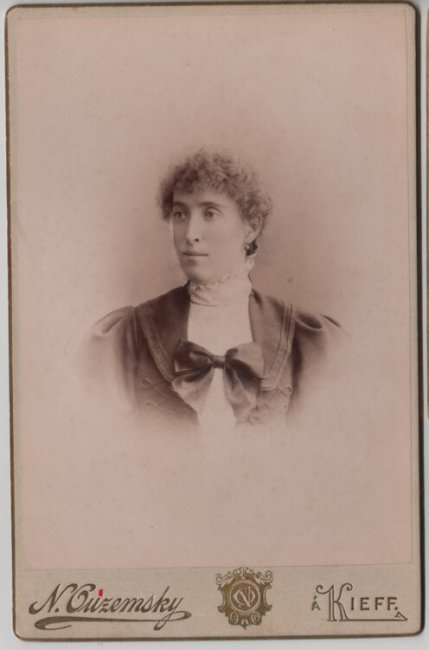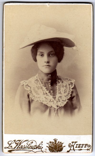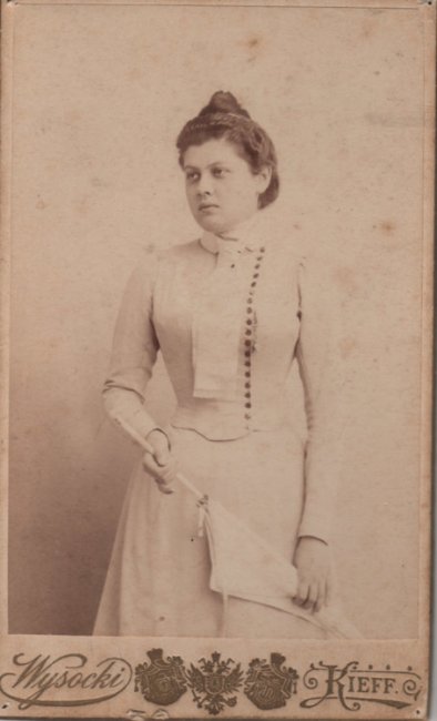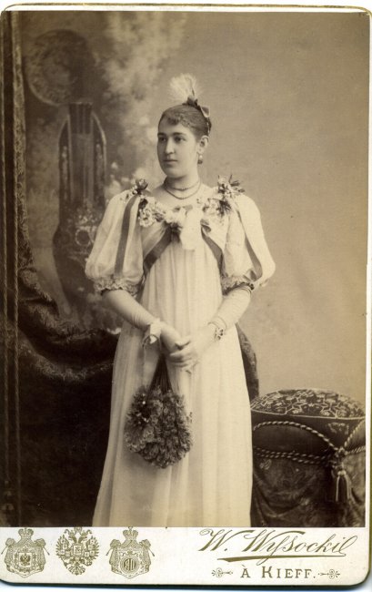 16 / 17Невідома. Фотопортрет зроблений в ател'є Висоцького наприкінці ХІХ-поч.ХХ ст. Звертають на себе увагу зачіска, одяг, гофровані деталі оздоблення