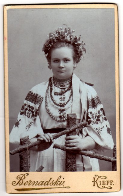 На фото киянок сторічної давнини цікаво роздивлятися не тільки деталі вбрання, а й предмети побуту, якщо вони потрапляли в кадр. У галереї нижче можна побачити фото дівчини в традиційному українському строї. Це було доброю традицією киян: дбайливо зберігати автентичне українське вбрання та робити фотопортрети в ньому час від часу. До речі, сучасні етнографи й мистецтвознавці радять поводитися зі старовинними вишиванками так само делікатно: берегти, щоб передати в спадок.