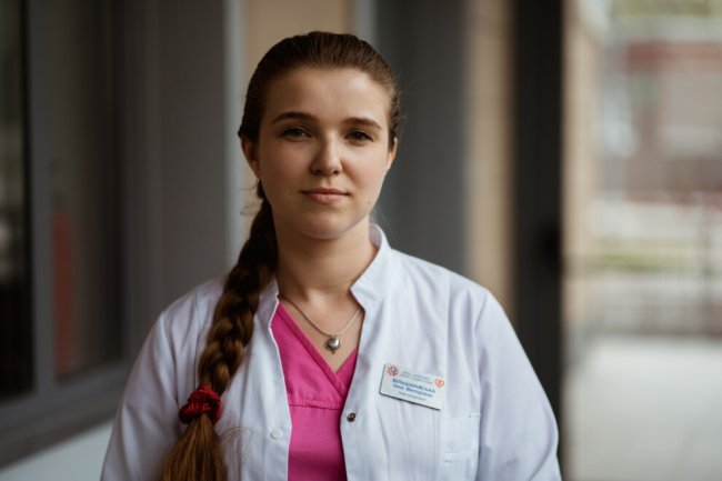 Про початок війни"Війна заскочила мене вдома. Я прокинулася від телефонного дзвінка мами мого чоловіка. Вона тоді сказала ті жахливі слова: “Почалася війна. Росія на нас напала”. Ми з чоловіком встали, передивилися вміст наших тривожних рюкзаків, зателефонували нашим найближчим родичам, щоб упевнитися, що з ними все нормально, і я пішла на роботу. У нас навіть не виникало питання, щоб виїхати. Я відразу попередила, що залишаюся в Києві й невизначений час житиму на території лікарні.