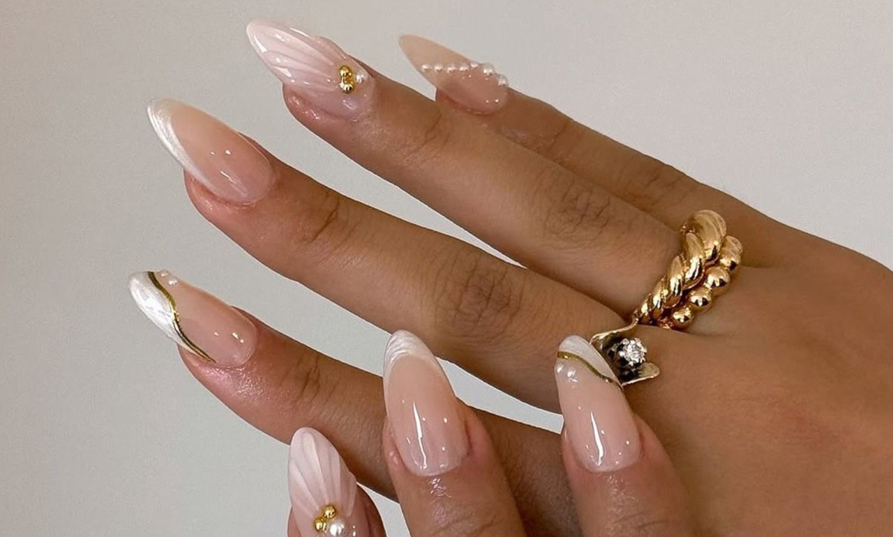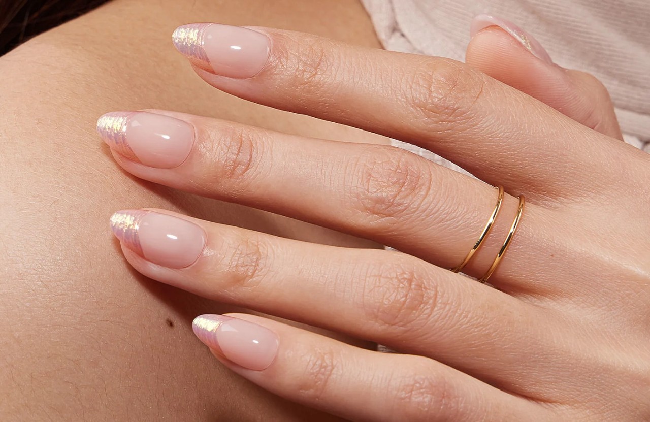 Жемчужный френч — это классический французский маникюр, дополненный мягким перламутровым сиянием. «Вместо плотного белого края и матовой базы используется более деликатная палитра: молочные, розоватые, кремовые оттенки с легким переливом. Иногда сияние наносится только на свободный край, иногда — на всю поверхность ногтя, в итоге маникюр выглядят как будто подсвеченными изнутри», — объясняет эксперт.