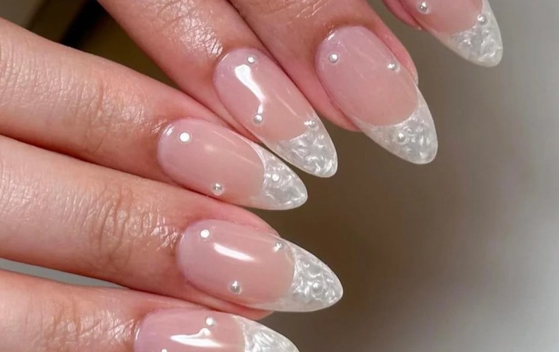 Техника выполнения несложная, но требует аккуратности. «Сначала выравнивается ногтевая пластина и наносится база — чаще всего полупрозрачная или молочная. Затем формируется линия френча: тонкая, четкая или, наоборот, слегка растушеванная. После этого добавляется жемчужный эффект — с помощью перламутрового топа или втирки», — рассказывает мастер по маникюру. Важно не переборщить: сияние должно оставаться деликатным, а не уходить в яркий металлик.