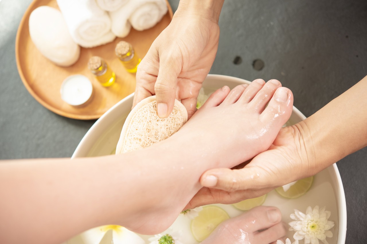 — Ванночки для ног — регулярные теплые ванночки размягчают кожу. «Можно добавить в воду морскую соль, соду, эфирные масла (например, лаванды или чайного дерева) или отвары трав (ромашка, календула). Принимайте ванночки 15-20 минут. После этого аккуратно обработайте натоптыш пемзой или специальной теркой для ног. Лучше делать это постепенно, в несколько подходов, чтобы не травмировать кожу», — рекомендует дерматолог.