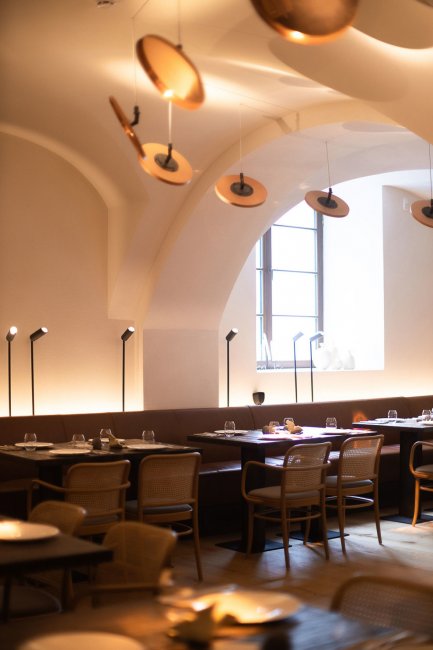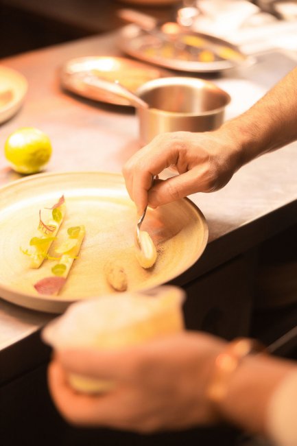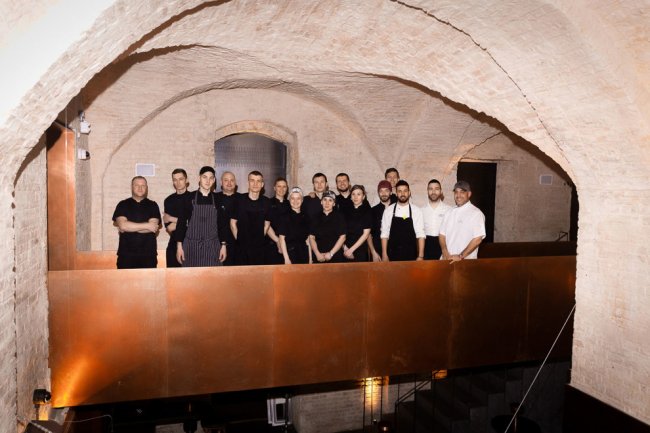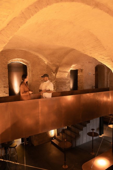 Так, в Samna самая большая кухня из всех моих проектов как по размеру, так и по техническому оснащению. Одновременно здесь легко размещаются 25 поваров, у которых в распоряжении есть все – от сувида и хоспера до гриля и аппарата для приготовления мороженого. Мне нравится, что команда, которая занималась дизайном, подчеркнула возраст этого здания, сохранив оригинальную кирпичную кладку и эти роскошные своды.