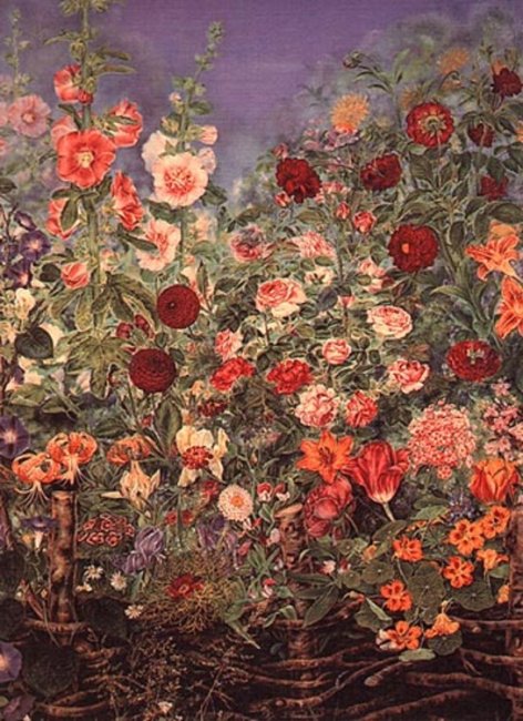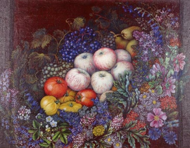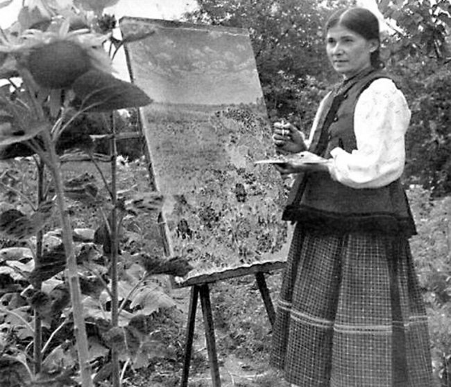 Марія Примаченко«Починалося все це так, – згадувала художниця, – якось біля хати, над річкою, на заквітчаному лузі пасла я гусей. На піску малювала всякі квіти, що бачила. А потім помітила синювату глину. Набрала її в поділ і розмалювала нашу хату... »
