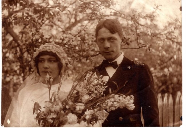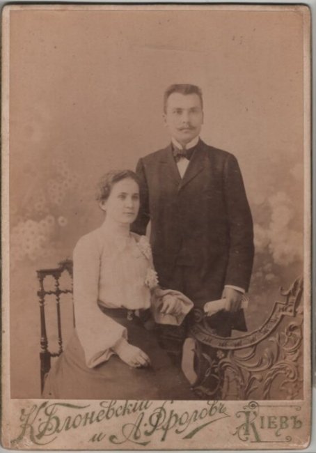 Л. О. Браїловський з нареченою Надією Лаврентієвною Козловською. 25.04.1914 р. Село Будаївка (нині – місто Боярка), Київського повіту.