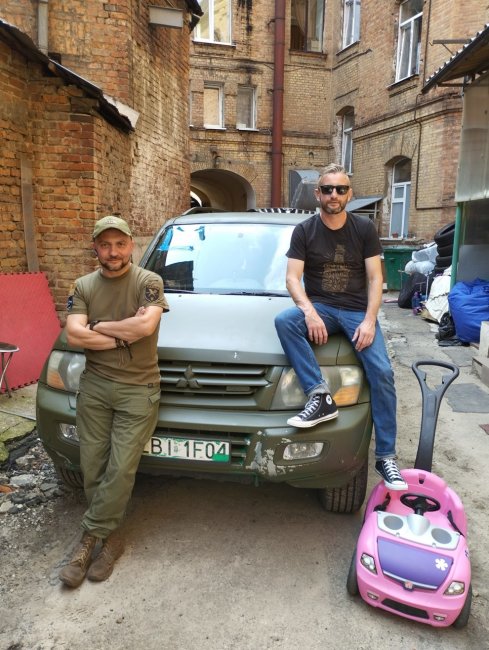 Сергій Жадан та Святослав Вакарчук (фото — фейсбук-сторінка Сергія Жадана)24 лютого 2022 року, коли почалася повномасштабна війна, Жадан перебував у потягу, що прямував до Вінниці, де мав відбутися концерт гурту «Жадан і собаки». Новини про російський наступ змусили Жадана вийти з потяга на найближчій станції, сісти в автобус і попрямувати разом з друзями назад до рідного Харкова. Відтоді й до сьогодні Жадан – один з найактивніших харківських волонтерів, які щодня ризикують життям, допомагаючи Харкову вистояти. Разом з командою волонтерів, кістяк яких складають музиканти, письменники, художники, Жадан розвозить їжу та ліки місцевим жителям, що були змушені кілька місяців провести в бомбосховищі Харкова, зустрічає машини з гуманітарною допомогою, доставляє автівки, дрони й тепловізори для ЗСУ на передову, допомагає жителям у тих селах, що опинилися на лінії фронту. Навесні Жадан з іншими волонтерами потрапив під обстріл.