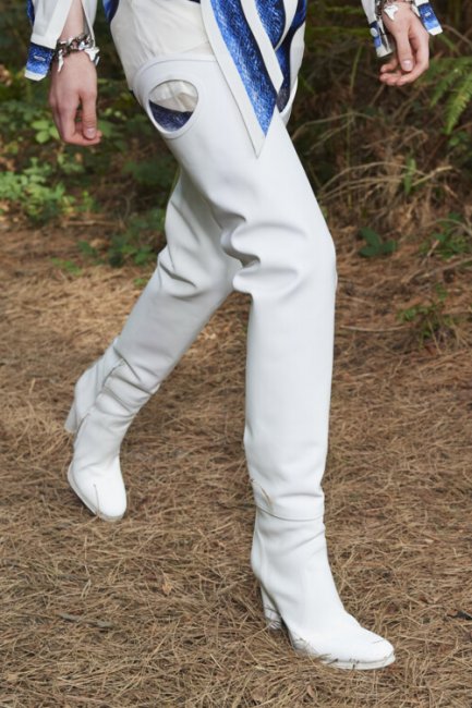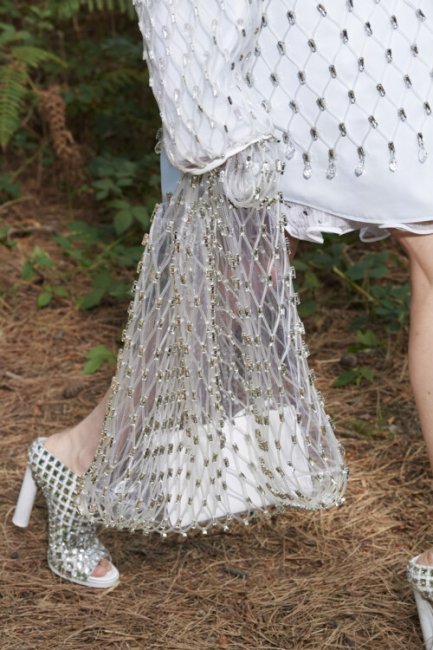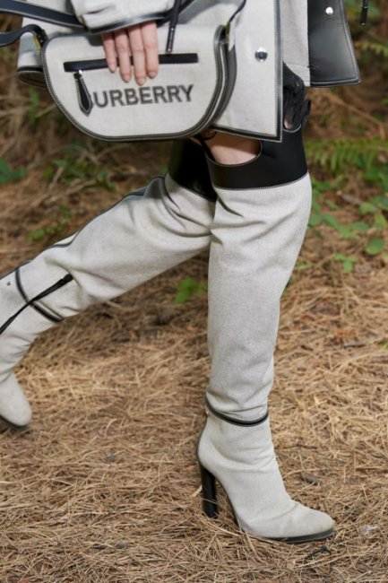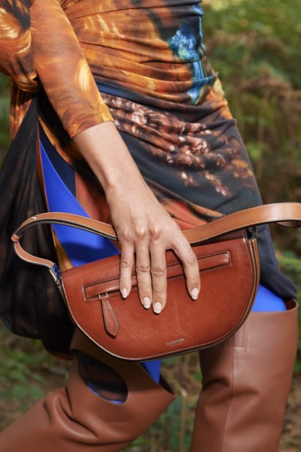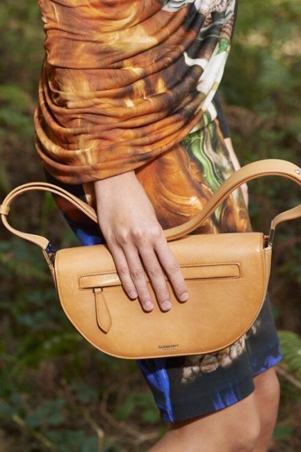 Несмотря на то, что показ коллекции Burberry весна-лето 2021 состоялся без зрителей в лесу недалеко от Лондона, креативному директору бренда Риккардо Тиши удалось провести физическое шоу и окунуть всех в свое меланхолично-отшельническое настроение. Главным лейтмотивом коллекции стало море, которое улавливается и в аксессуарах – одной их визитных карточек Burberry. К классическим кожаным сумкам-полумесяцам дизайнер добавил шоперы, сплетеные на манер рыбацких сетей, а ботфорты напоминали о высоких сапогах моряков.