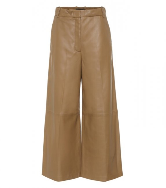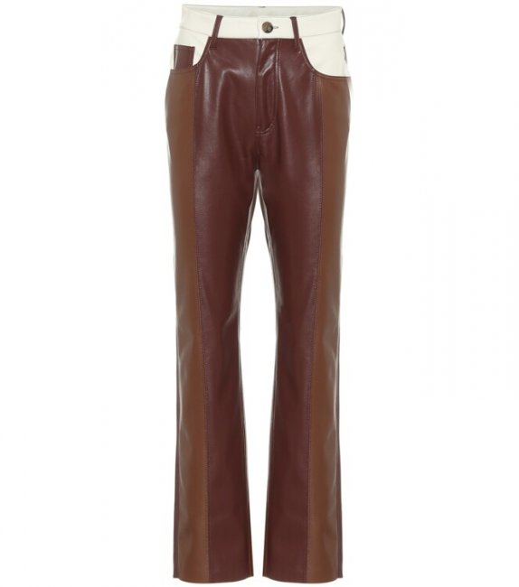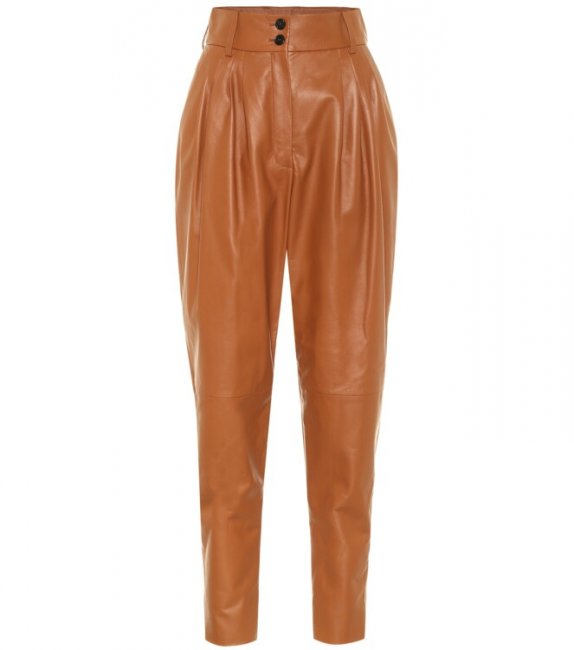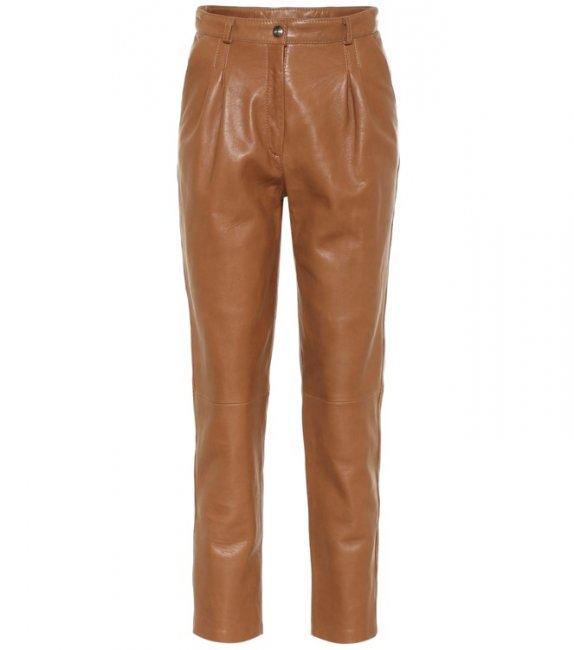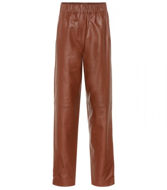 Ким КардашьянФото: vogue.comКстати, цветная кожа – один из главных трендов наступившей осени, особенно в теплых рыжевато-охристых тонах. Брюки из такой кожи можно смело носить вместо джинсов как с простыми футболками, так и плечистыми пиджаками. Или сочетать с замшей, как сделала Ким Кардашьян. Мы вдохновились ее примером и выбрали еще несколько пар кожаных брюк, с которыми эти осенние месяцы станут куда интереснее.