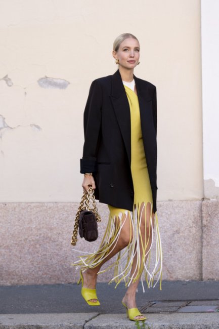 Неделя моды в Милане ближется к своему завершению, а ее гости спешат продемонстрировать как можно больше актуальных осенних образов. Глядя на их фотографии так и хочется купить себе комбинезон из цветной кожи, платье с юбкой-бахромой, стеганый жакет и белые ботфорты, которые идеально подходят для еще теплых и сухих сентябрьских дней.