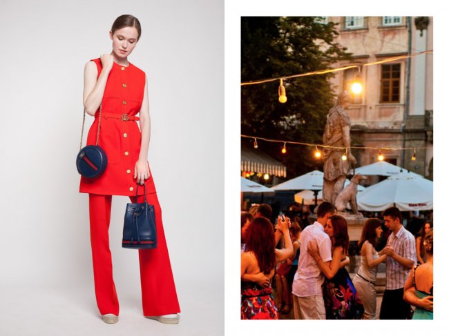 Сальса на площади РынокВернувшись в центр города, обязательно прогуляйтесь по площади Рынок – одной из самых красивых площадей Украины. Сумерки, первые огни фонарей, старинные улочки, брусчатка, песни уличных музыкантов – если будет настроение потанцевать, не стесняйтесь. Для спонтанных танцев подойдет удобный и эффектный костюм Gucci. Но если вам по душе более страстные танцы, попробуйте сальсу у фонтана "Диана" возле ратуши города. Каждый вечер пары привлекают взгляды прохожих своими танцами под латиноамериканские мелодии. Вы и ваш партнер будете в центре внимания в ярких образах Dolce & Gabbana.