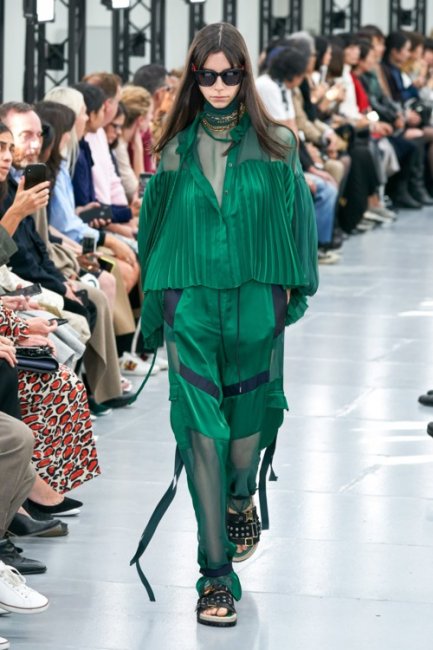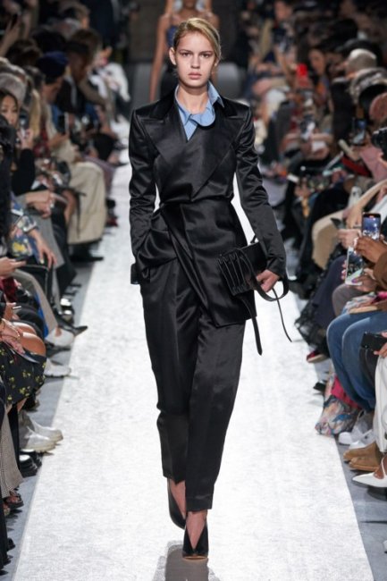 Для любительниц играть ва-банк модные Дома продемонстрировали смелую стилизацию – атласный total look. Такой образ подойдет на все случаи жизни: игривое сочетание атласного топа на бретельках и юбки с глубоким вырезом, как в коллекции Brandon Maxwell – для вечерних мероприятий, брючный костюм, как у Y/Project – для официальных выходов, или даже расслабленный комбинезон, как в коллекции Sacai – для прогулок теплыми вечерами.