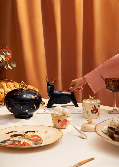 "Вера в сказку и чудеса, происходящие в новогоднюю ночь, объединяют самых разных людей, – рассказывает со-основательница Gunia Project Мария Гаврилюк. – Именно эти эмоции мы хотели и передать в нашей съемке. При создании этой коллекции мы вдохновлялись эстетикой народных икон на стекле, ведь своей неидеальностью и наивностью они как раз и символизируют всю искренность чувств".