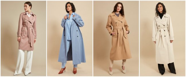 Если верхняя одежда, то классический тренч ниже колена. Почему именно эта длина? Такой плащ можно монтировать в разные образ — вы просто берете его с вешалки, не задумываясь как он смотрится с сегодняшним комплектом. Вариантов быть не может — классика идет со всем. Но есть хитрость — стоит выбирать оттенок тренча контрастный вашему цветотипу. Тогда вы гарантированно избежите модного провала.
