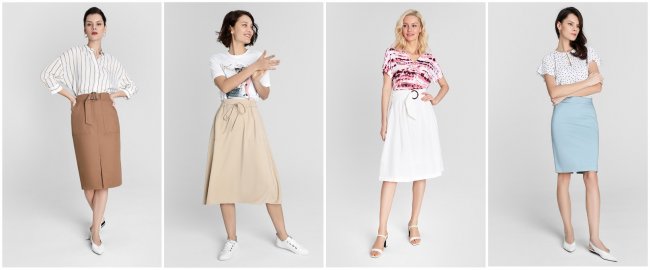 Пятый элемент нашей капсулы — удобная юбка. Выбор фасона зависит не только от ваших предпочтений, но и от фигуры. Дизайнеры и бренды масс-маркета рекомендует присмотреться к юбке-карандаш, трапеции или варианту с плиссировкой. Проследите, чтобы ваш экземпляр органично сочетался с тренчем — юбка не должна быть длиннее верхней одежды.