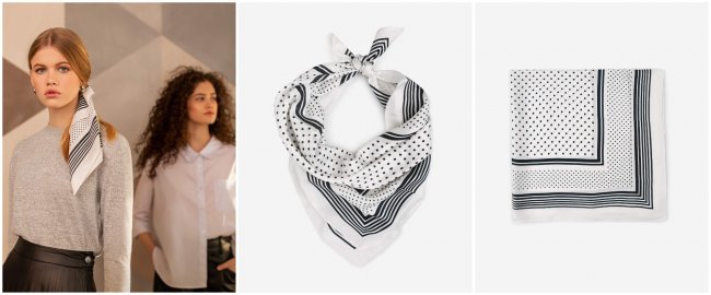 Бандана «в огурцах» неизменно сопровождает юношей и девушек в период взросления. Шелковый платок — это уже аксессуар состоявшейся шикарной женщины, которая не боится ярких акцентов. В разные времена дизайнеры стараются не забывать о косынках, вот и в этом сезоне они снова в центре внимания. Инфлюенсеры Алекса Чанг и Белла Хадид часто появляются в банданах на снимках в своих соцсетях. Это верный знак того, что и другие инста-модницы скоро станут последователями этого модного тренда. Мы советуем не отставать и купить топовый аксессуар уже сейчас. В стиле hip-hop Фото: O STIN Ваша юность пришлась на 90-е и нулевые? Тогда вы застали модных ребят, разгуливающих в банданах, повязанных как у Эминема, а может и сами были таким прогрессивным юношей и пропагандировали hip-hop в своем районе. Вспомните любимые способы завязывания платков и снова вступайте в ряды последователей андеграунд-культуры. Для девушек, знакомых больше с рифмами Есенина, чем Jay-Z, советуем присмотреться к стилю пин-ап — бантики и ободки из косынок тоже в тренде. Фото: Kari С геометрическим принтом Фото: Gloria Jeans Этот аксессуар с актуальным геометрическим принтом преобразит однотонный образ. Четкие линии, рябящие точки и прямые углы будто создают направление, которое ведет в одну сторону — к стилю. Используйте такие косынки в качестве украшений для волос, подвязывайте на пояс или на сумку-шоппер — творческий подход только приветствуется. Фото: Zarina С цветочным принтом Фото: Kari Романтика никогда не устареет. Модели с орнаментом пейсли или с простыми повторяющимися цветочными мотивами внесут разнообразие и добавят легкости в строгие офисные образы. Не бойтесь сочетать принты. Гусиная лапка, мелкая или крупная клетка запросто находят общий язык с хаотичной цветочной расцветкой — даже в мире координат и графиков может раскрыться бутон. Фото: Stradivarius