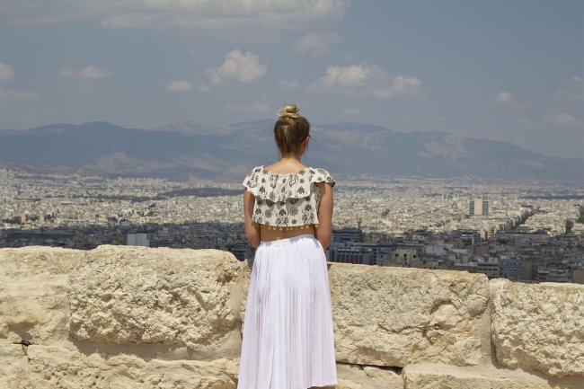 Характерной особенностью греческого стиля в одежде является асимметрия в фасонах платьев. Это могут быть как скошенный подол платья, так и вырез, приоткрывающий одно плечо. Аксессуарами служат широкие пояса на талию, браслеты, серьги, кулоны, диадемы и заколки для волос, часто состоящие из звеньев, орнамент которых напоминает перышки.