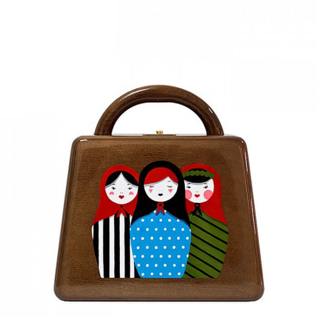 Деревянные сумки можно найти в коллекциях брендов класса «люкс», таких, как Chanel и Dolce & Gabbana. Заслуживают внимания также и сумки от более либеральных, но тем не менее интересных брендов, таких, как Grov Grov и Mybacio.