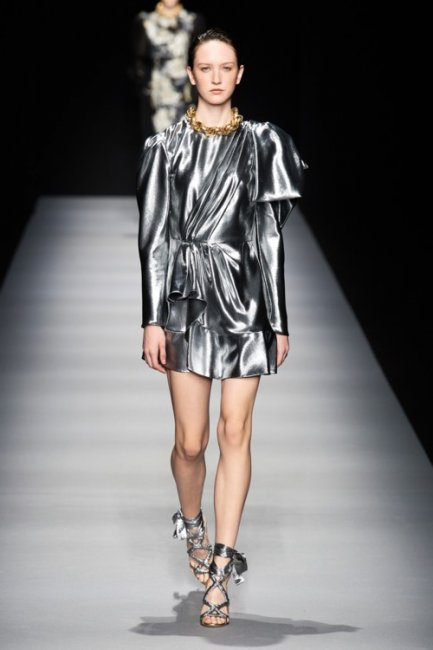 BurberryСамыми актуальными в этом сезоне стали платья в оттенке хромированного серебра: такие варианты можно найти в коллекциях Andrew Gn, Paco Rabbane, Alberta Ferretti, Sportmax, Altuzarra, Miu Miu, Erdem и Versace. Они хороши не только своей самодостаточностью, ведь им не нужны сложные обрамления в виде многоярусных украшений, но и бесконечной функциональностью: сочетать такие платья можно и с любимыми лодочками на каблуке, и с армейскими ботинками, и с пальто длины макси, и даже с объемным пуховиком. Еще одними фаворитами сезона стали платья с золотистым отблеском, как в коллекциях Emilia Wickstead и Y/Project. Лучшими союзниками таких моделей станут популярные геометрические сумки и обувь с квадратным мысом. Платья с эффектом металлик станут хорошей инвестицией в базовый гардероб, ведь дизайнеры настоятельно рекомендуют не скромничать и носить их не только по особым случаям, но и в будни.
