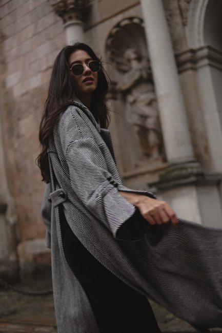 Зимнее пальто - базовый элемент гардероба, который вступает в игру, когда речь заходит о повседневных casual-образах. В этом сезоне осень-зима 2020/2021 среди актуальных моделей представлены как монохромные пальто мужского кроя, так и женственные двубортные модели в стиле ретро. Особенного внимания заслуживают пальто в графический принт, который никогда не выйдет из моды. Так, модный инфлюенсер Вики Панда на днях продемонстрировала классическое пальто Emporio Armani, вдохновленное эстетикой 1960-х годов. Вики примеряла вневременную модель в "елочный" принт, который легко составит конкуренцию традиционной шотландской клетке "гусиная лапка".