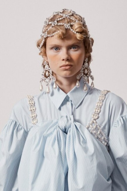 Жемчуг не потерял своего шика. Отличительной чертой коллекции Simone Rocha являются хитросплетенные жемчужные сетки для волос, а у Emilia Wickstead такие комплекты стали особенно роскошными благодаря сотрудничеству с ювелиром Джессикой МакКормак.