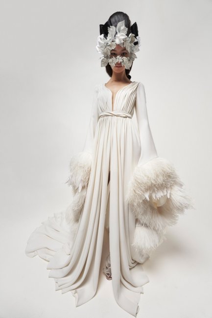 Giambattista Valli Couture весна-лето 2021Дизайнер не стал экономить на тюле для своих фирменных бальных платьев, которые с каждым разом становятся все шире, при этом не теряя свою восхитительность. Он показал многоярусные и многослойные творения, будто сотканные из сахарной ваты в пыльно-розовых, ярко-красных, чисто-белых или драматических черных тонах с золотыми точками. Некоторые были в форме лебедей, другие напоминали воздушную плиссированную ленту, а третьи отсылали к накидкам греческих богинь, расшитым страусиными перьями. Помимо объемов, одной из главных линий в коллекции стали эффектные рукава. Giambattista Valli представили ниспадающие епископские рукава, расклешенные варианты и пышные рукава-фонарики. Образы дизайнер завершил объемными прическами, вдохновленными фотографиями итальянской топ-модели Бенедетты Барзини и американской актрисы и модели Марисы Беренсон 1960-х годов.