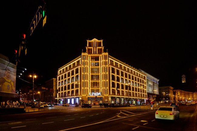 MONATIKСпециально к наступающим новогодним праздникам ДТЭК в партнерстве с ЦУМ реализовали проект декоративной подсветки фасада универмага. Более четырех месяцев промышленные альпинисты, машинисты подъёмных машин и электромонтажники ежедневно работали над установкой 7 600 ретро ламп теплого свечения по контуру здания. Освещение фасада выделяет универмаг в темноте, создает ощущение волшебства и идеально гармонирует с другими элементами архитектуры.