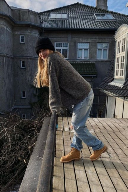 Этой зимой среди самых актуальных пар обуви были резиновые ботинки Wellington и практичные duck boots. Однако сейчас внимание модниц переключилось на культовые ботинки Timberland. Блогер Перниль Тейсбек, которая в сотрудничестве с Gia Couture Firenze создавала линию резиновых сапог Gia x Pernille, отложила свои любимые сапоги и сделала ставку в пользу классических сверхпрочных ботинок из нубука Timberland. На днях streetstyle-звезда опубликовала снимок в Instagram-аккаунте вместе со своим мужем Филипом Лотко, где они позируют в рыжих ботинках на шнуровке. Скандинавская модница дополнила образ серыми джоггерами и маскулинным черным жакетом, а ее супруг выбрал спортивные брюки и бомбер.