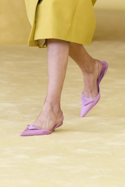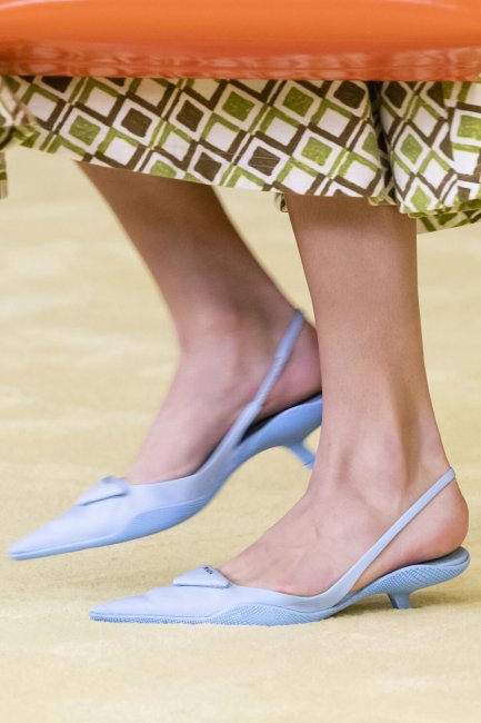 FendiМиниатюрный и изящный kitten heel уже успел завоевать признание среди всех поклонниц мира моды, практически вытеснив высокие шпильки на второй план. Практичные и комфортные мюли и лодочки на низком каблуке презентовали Versace, Prada и Valentino. Миди-юбки станут им надежными союзниками в этом сезоне.