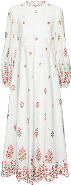 Платье Zimmermann, жилет Etro, обувь Roger Vivier, украшения Gucci и Sydney Evan