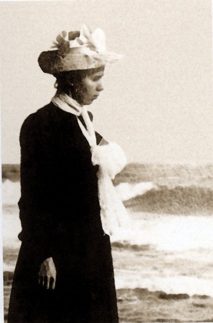 С 1901 по 1903 годы Леся Украинка не единожды посещала итальянский курортный городок Сан-Ремо, климат которого идеально подходил ей для лечения от многочисленных болезней. Причем возвращалась она сюда как в теплое время года, так и холодное. В один из таких приездов и было сделано это фото, на котором Леся Украинка изображена в элегантном черном пальто по фигуре, ее голову украшает аккуратная шляпка, а на шее развевается светлый шарф.