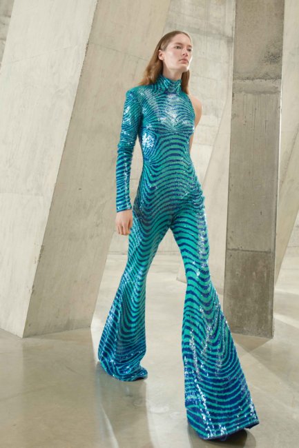 «Пора вставать и сиять», - говорит дизайнер Стелла Маккартни, чья коллекция осень-зима 2021/2022 представляет собой взрыв насыщенных цветов, блеска и преувеличенных пропорций, предназначенных для повседневной жизни. Традиционные для бренда землистые тона, нежно-розовые и бисквитные оттенки в этот раз уступили дорогу громкой и гордой палитре. Среди главных оттенков коллекции: сверкающая бирюза, появившиеся в виде высоких ботфортов-чулок, травянистый зеленый цвет, украсивший платья-трапеции, синий электрик в виде брюк-клеш, головокружительные оптические узоры на объемных трикотажных изделиях и клетка "гусиная лапка", появившаяся на маскулинных жакетах.