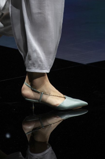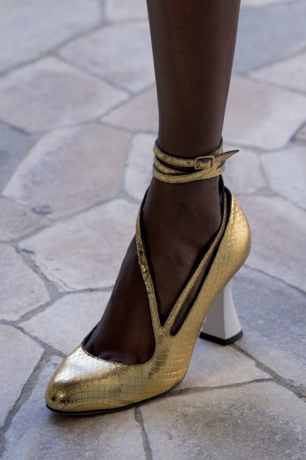 ChanelОтличительной деталью актуальных туфель этой весны являются ремешки на щиколотках. Несмотря на то, что эта обувь может визуально укоротить силуэт, дизайнеры предлагают прежде всего делать ставку на комфорт в этом сезоне. Туфли на высоком каблуке с ремешком на щиколотке в коллекции Max Mara были настолько элегантными, насколько это возможно - бренд показал модель с жестким острым носком и тонким ремешком несколько раз охватывающим щиколотки в классических нюдовых или коричневых тонах. Тем временем, Ports 1961 предложили эффектные золотые пары, а Alessandra Rich - вечерние туфли с двойным ремешком.