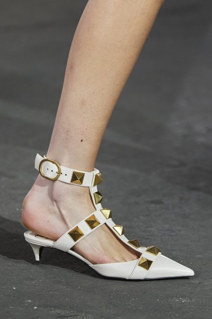 Victoria BeckhamБлагодаря Одри Хепберн остроносые туфли с миниатюрным каблуком-рюмочкой высотой до 5 см обрели всеобщую популярность. После выхода на экраны таких фильмов как "Сабрина" , «Забавная мордашка» и «Завтрак у Тиффани» многие модницы мечтали обладать заветной парой туфель, как у легендарной актрисы. В сезоне весна-лето 2021 элегантные и изящные туфли с "кошачьим" каблуком, более известные как kitten-heels, стали главным объектом обожания среди дизайнеров. Valentino украсили туфли массивными шипами, Prada соединили спортивный шик и элегантность в одном флаконе, а Giorgio Armani предложили вечерние атласные лодочки.
