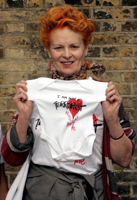 Спасти мирВивьен Вествуд представляет новую коллекцию футболок, разработанную исключительно для правозащитной организации Liberty и созданную в ответ на правительственные законы о борьбе с терроризмом, 2005На протяжении всей своей карьеры Вивьен Вествуд находилась в постоянной опозиции и боролась с различными проблемами, с годами ее политическая вовлеченность становилась все сильнее и сильнее. Цель Вествуд? Стремиться сделать мир лучше — как в экологическом, так и социополитическом аспектах —, что она доказывала не только участием в протестах, но и работой — футболками с надписями «Спасем Арктику» или отказом от использования натурального меха в своих коллекциях. Со временем, как ключевой игрок в индустрии моды, Вивьен Вествуд стала использовать показы своих коллекций не только для демонстрации одежды. Ее шоу регулярно сопровождаются политическим манифестом: модели спускаются по подиуму, демонстрируя лозунги, читая стихи или произнося мощные речи.