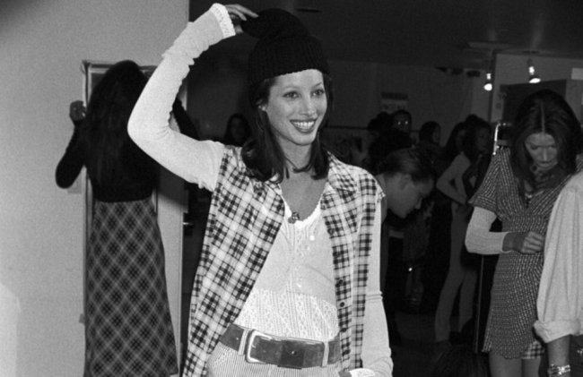 Grunge and Glory, американский Vogue, 1992Из чего состояла коллекцияВ самой коллекции Grunge весна/лето 1993 доминировал клетчатый принт. Разукрасил дизайнер наряды и другими узорами: цветочными, полоской, разнообразным горохом. Ими Джейкобс украсил всевозможные элементы одежды: от юбок длины миди и шортов до рубашек с рукавами разной длины, шарфов и лифов. Еще одной особенностью коллекции было то, что дизайнер перенес героев американских мультфильмов того времени на шифоновые рубашки. Образы дизайнер дополнил кедами Converse и ботинками Dr. Martens, и такое сочетание грубой обуви с одеждой на подиуме стало "удобной" новизной, за которую модницы благодарны до сих пор.