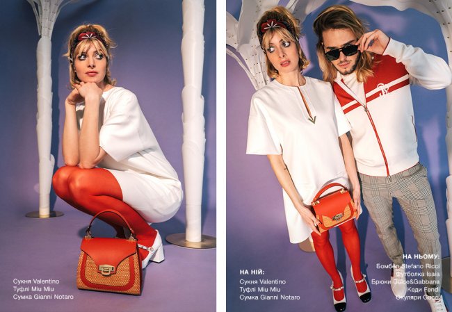Настроение свингующих шестидесятых можно уловить в белом платье А-силуэта Valentino, в образах, созданых по технике color blocking, сочетающих желтую блузу Roksanda и оранжевую юбку Valentino, в игривом мини Balmain, которое оценила бы сама Мэри Куант, игривых туфлях Miu Miu или футуристичной сумке Coperni. Каждая вещь в веснне-летнем кампейне Symbol излучает энергию цвета.