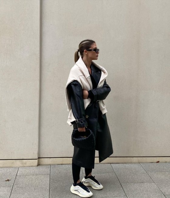 В этом сезоне весна-лето 2021 модницы выбирают леггинсы со штрипками, однако теперь штрипка служит не фиксатором, а декоративным элементом в образе, который как раз streestyle-звезды стремятся показать. Смело надевайте культовые лосины с каблуками, кроссовками, брогами и лоферами с массивной подошвой, а также с классическими балетками, которые вернулись в моду этой весной. Главное правило, которое следует запомнить: если вы надеваете обтягивающий низ, то сверху должна быть объемная одежда: маскулинный жакет, рубашка из мужского гардероба, свободный бомбер или худи.